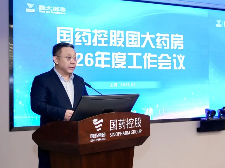 吴壹建作题为《聚焦主业 调整结构 提质增效 转型升级》的工作报告。报告指出,2025年面对内外交困的严峻形势,在国药集团和国药控股的战略指引下,国大药房全体干部员工迅速调整布局,重塑组织,重塑业务,抓住关键核心要点,迎难而上,实现了经营和管理上的逆势上扬。以舍我其谁的勇气与担当,狠抓亏损治理,强攻核心商品,细抠提质增效,实现了2025年经营业绩的逆风翻盘、扭亏为盈,书写了一段波澜壮阔的改革历史。报告强调,2026年国药控股国大药房要聚焦核心、优化业务结构、深化降本增效,积极探索转型升级新路径,围绕商品力与品牌力建设,系统打造国大药房的核心竞争力,以实干实绩奋力实现“十五五”良好开局。