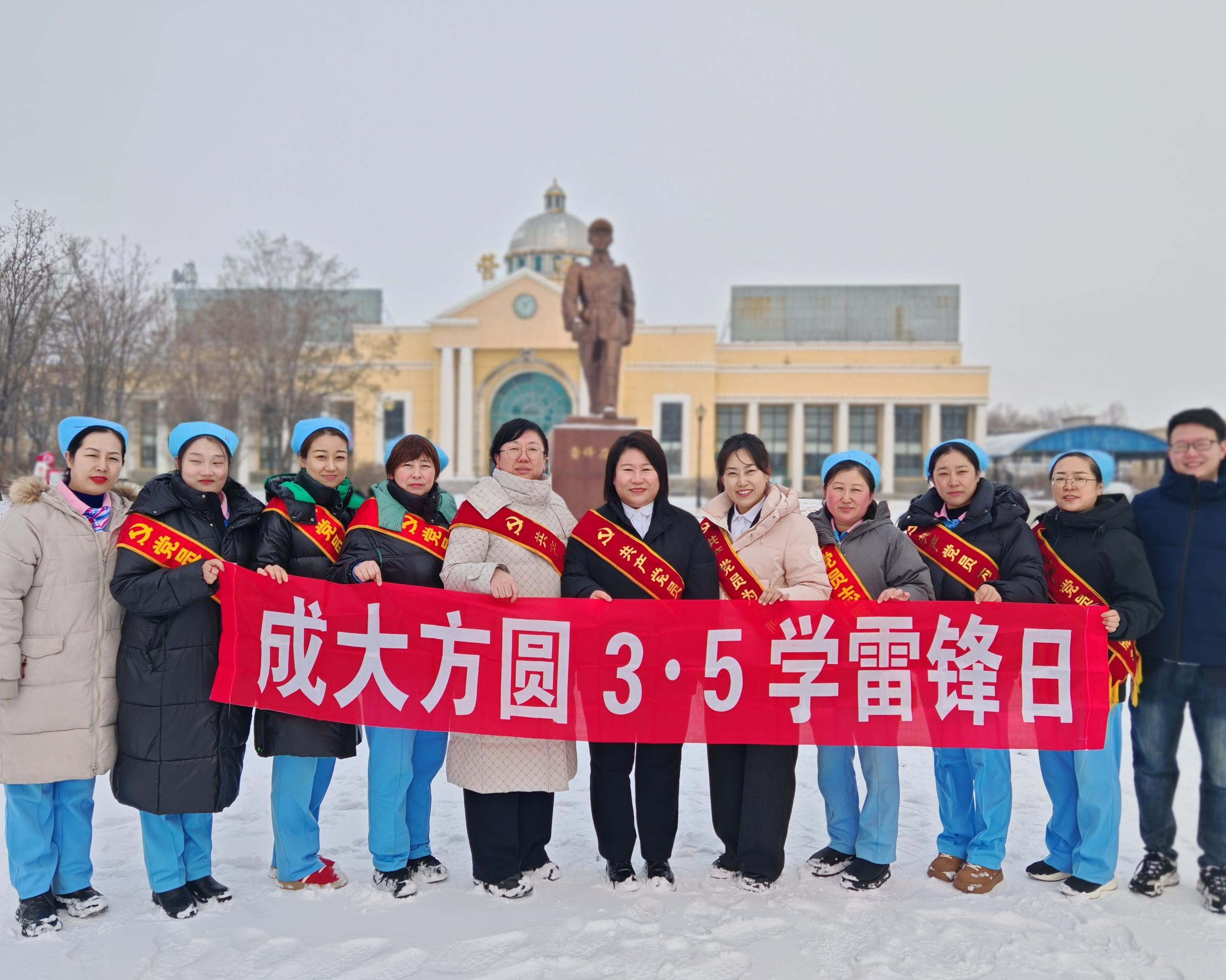 成大方圆营口地区组织员工开展学雷锋主题实践活动。全体党员及员工代表在雷锋塑像前重温先进事迹,感悟精神内涵。结合近期降雪天气,员工们化身志愿者,在店门前开展扫雪除冰行动,为市民打造安全整洁的通行环境,将思想教育与志愿服务紧密结合,让雷锋精神在基层落地生根。