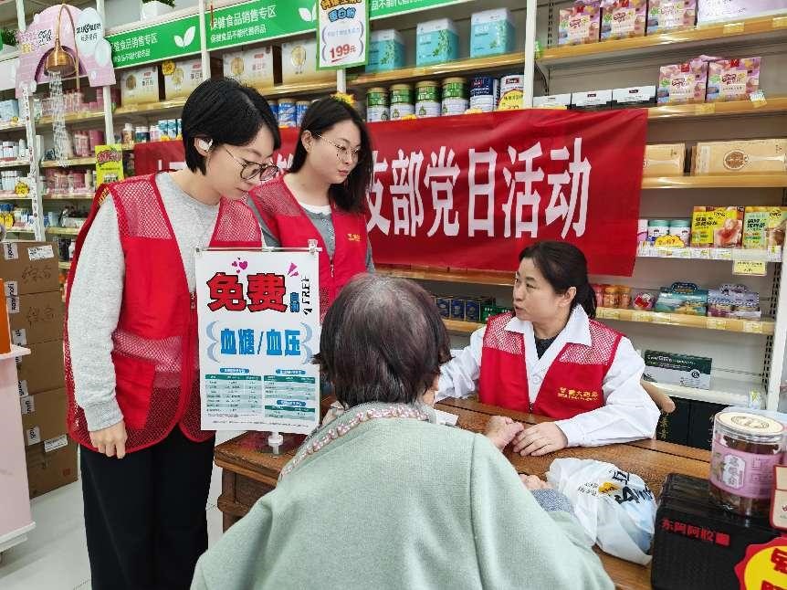 山西国大益源第一党支部组织党员志愿者走进门店,开展便民志愿服务活动。活动现场,党员志愿者们热情接待前来咨询的群众,认真为大家免费测量血压、血糖,细致讲解健康常识、用药注意事项及日常保健知识。大家耐心解答群众疑问,用专业服务传递温暖与关怀,以实际行动践行雷锋精神和党员的责任担当。